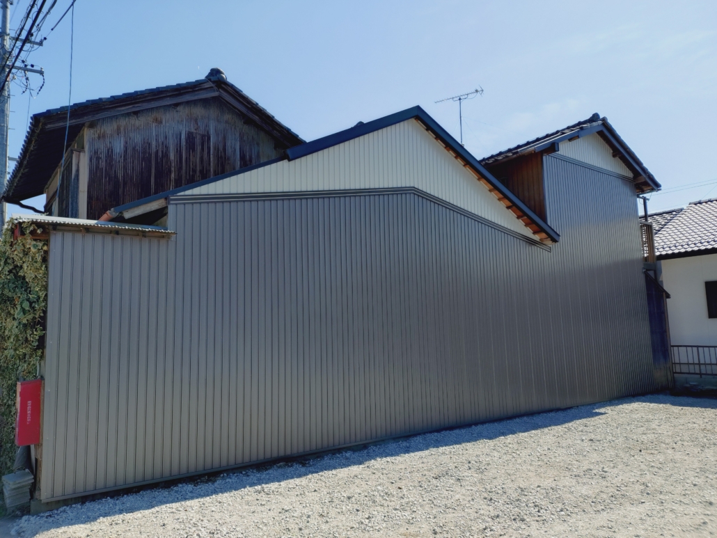 施工事例 G様邸 岐阜県大垣市 外壁角波GL鋼板を施工させて頂きました。防水シート、下地胴縁を取り付ける前に12mmの耐震構造用合板を外壁全体に貼りました。筋交いなどが少ない構造でしたので、これで安心の家になりました。 BEFORE AFTER Eセンター様倉庫 岐阜県養老町 大規模倉庫の改修工事です。屋根折版が錆びて老化していました。ここまでなると塗装工事はできません。ガルバリウム鋼板厚さ0.8mmの折版にペフを裏張りしましたので結露の心配もありません。カバー工法ですので工事中も建物内部では普段通りの作業が出来ます。大変風が強い現場で75tクレーンを使用しての作業でしたので、安全に細心の注意を払い、無事施工完了する事が出来ました。 BEFORE AFTER M様邸 岐阜県大垣市 西風が吹きつけるので、窯業系サイディングの塗装がはがれ落ちてしまっていました。中間のサイディング幕板(黒い帯)の干渉を防ぐために21mmの胴縁を打ち、角波GL鋼板4山リブ入りを施工させていただきました。棟から土台水切りまで6.8mの一枚物で仕上げました。モスグリーンで他面ともマッチして違和感がなく、吹き込みの心配もなくなりました。 BEFORE AFTER O様邸 岐阜県養老町 外壁角波GL鋼板、下屋根立平葺きGL鋼板を施工させていただきました。外壁は既設波板の上から胴縁木下地角波GL鋼板、今までなかった下屋根は新設の立平葺きGL鋼板です。新築のような仕上がりになりました。 BEFORE AFTER I様邸 岐阜県養老町 外壁角波GL鋼板を施工させていただきました。既設外壁の上から胴縁木下地を打ち、角波GL鋼板を張りました。外壁が二重になり空気層が出来たので、断熱効果が高まりました。妻側三角部分はファッション見切りで色変えをし、綺麗な仕上がりになりました。 BEFORE AFTER H様邸 岐阜県池田町 屋根カラーベストのカバー工法です。S&Sルーフを使用させていただきました。断熱材が裏打ちしてありますので断熱効果、雨音の減少につながります。カバー工法ですので、雨漏りの心配はなくなり美しい仕上がりになりました。もちろんお住いのままで施工できます。 BEFORE AFTER O様邸倉庫 岐阜県大垣市 倉庫瓦棒屋根をステンレス鋼板を使用し、カバー工法で施工をさせていただきました。 カバー工法ですので、棟は解体しましたがその他はほとんどハサミを入れずに施工しますので、倉庫の中に物があっても濡れる心配がありません。住宅の場合お住いのままでも施工出来ます。 BEFORE AFTER O様邸車庫 岐阜県池田町 車庫パラペットに窯業系サイディングが貼ってありましたが経年劣化でめくれやコーキングの剥がれがおきていましたので、角波GL鋼板を施工させていただきました。スッキリした仕上がりになりました。 BEFORE AFTER O神社様 岐阜県岐阜市 神社本殿雨樋施工をさせていただきました。 古くなった銅製の集水器アンコー竪樋を、ステンレス製銅コートの物に取り替えました。芯がステンレスですので強度があり、衝撃にも強くなりました。銅の輝きがあせて色が落ち着くまでには何年かかかります。 BEFORE AFTER O神社様 岐阜県岐阜市 神社社務所屋根板金工事施工をさせていただきました。 屋根はGL鋼板スレートカバー工法です。古いスレートのため、アスベスト対策としてカバー工法を用いました。雨漏りもなくなりました。 外壁取り合いは水切り、角波GL鋼板を施工させていただきました。 BEFORE AFTER M様邸 岐阜県垂井町 倉庫屋根板金工事施工をさせていただきました。 屋根はGL鋼板小波ですが、既製品では長さがたりません。勾配がないので既製品の継ぎ足しはやめて、GL鋼板成型加工品を使用して施工させていただきました。バンポライトの明り取りをポリカーボネイトに変更し、釘打ちからビス止めに変更、雨漏りもなくなりました。 BEFORE AFTER H様邸 岐阜県養老町 倉庫屋根板金、外壁板金工事施工をさせていただきました。 屋根は瓦棒のカバー工法、外壁は鉄板小波板から角波GL鋼板です。庇屋根は立平葺きGL鋼板葺きに、バンポライトの明り取りをポリカーボネイトに変更、雨といは外観に合わせて黒色に変更しスッキリした外観になりました。 BEFORE AFTER F様邸 岐阜県養老町 通路屋根板金貼り換え施工をさせていただきました。 既設の屋根は波板トタンで昼間でも暗かったのですが、ポリカーボネイト採光材に変えてとても明るくなり、通路に面する部屋も窓から日差しが入るようになりました。また雨漏りもなくなりました。 BEFORE AFTER A様邸 岐阜県大垣市 雨といの半月105の架け替えを施工させていただきました。 お隣の神社の木の葉が詰まり排水が悪くなっていたので、軒樋に落ち葉止めを取り付けました。これでこの秋も安心です。 BEFORE AFTER N様邸 岐阜県養老町 雨といはパナソニック社製PC50、雪止めはステンレス製アングル40×40×3mmです(高品位ステンレスSUS304)。アングル取付金物ももちろんステンレス製ですので、錆びることはありません。 N様邸 岐阜県養老町 外壁板金角波GL鋼板です。施工前は50年ほど前の古